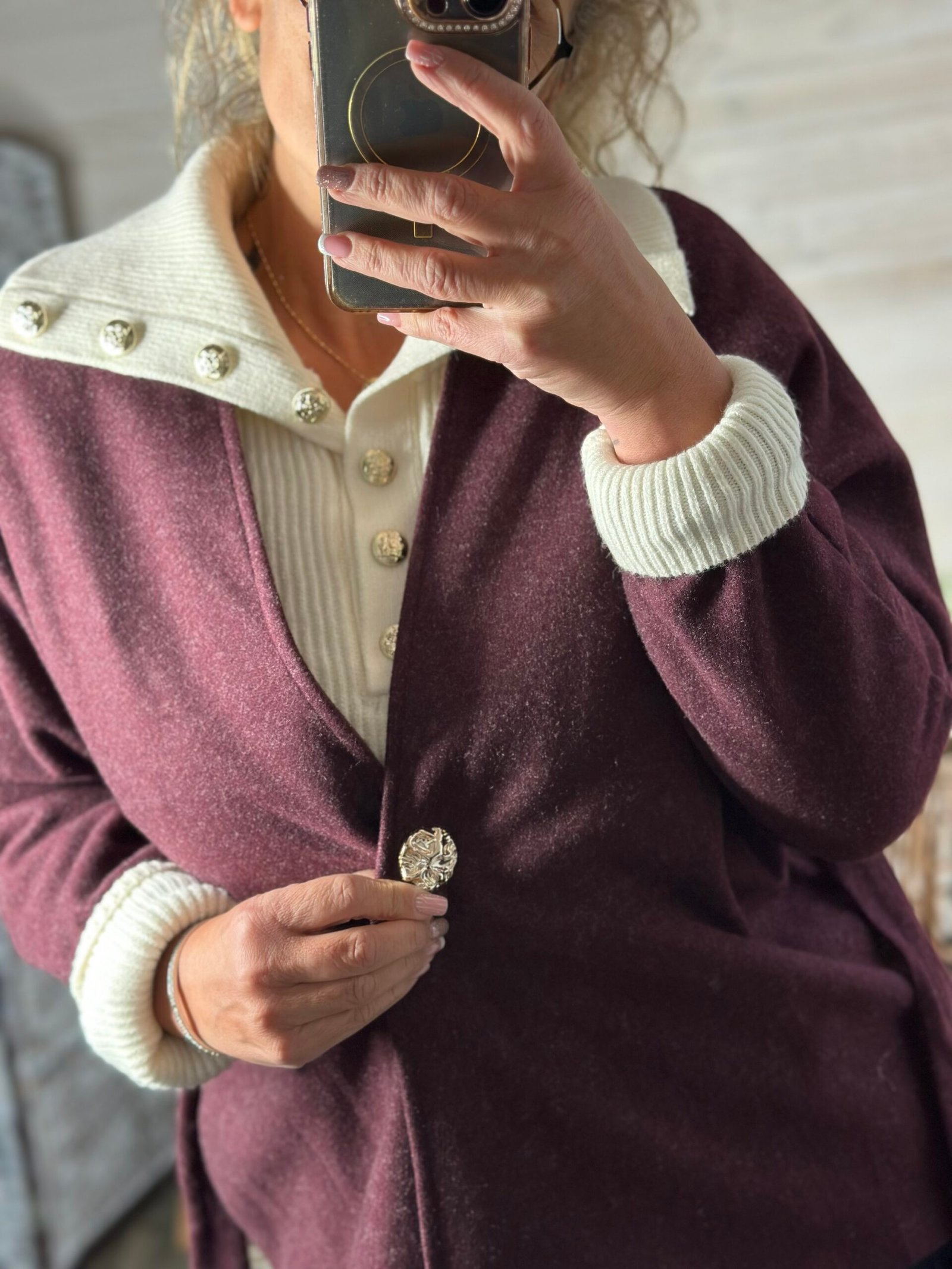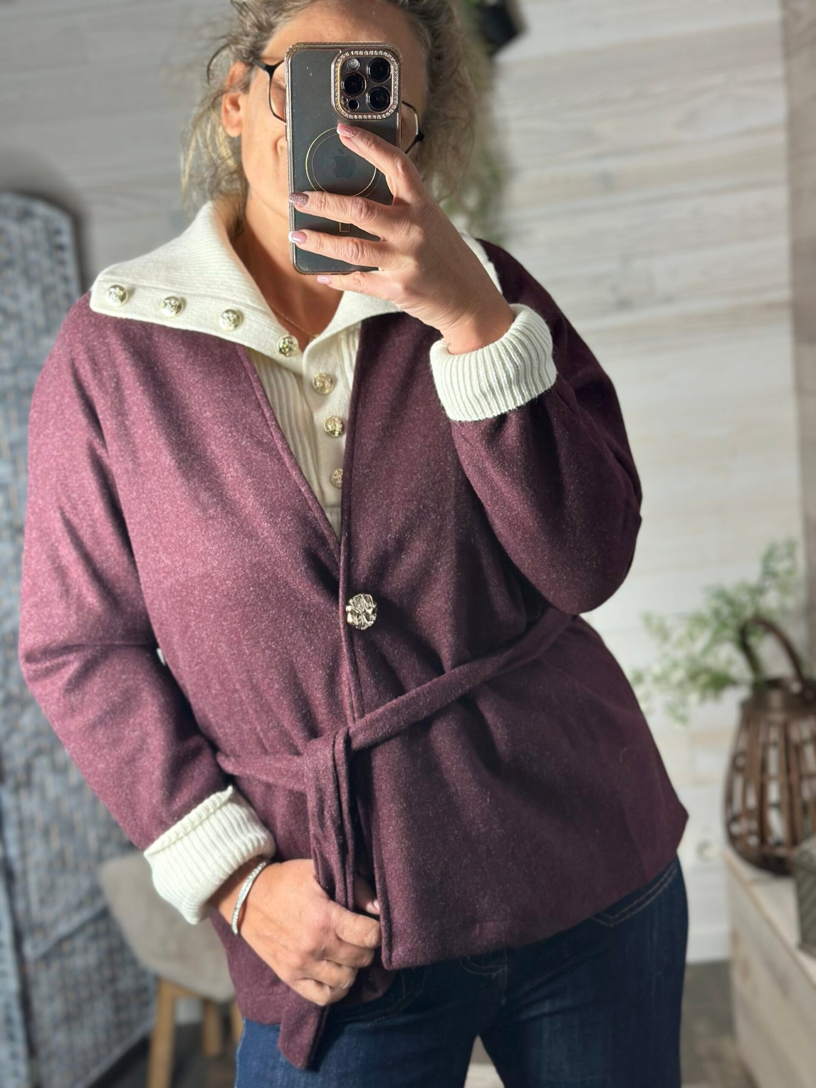 Gilet veston se ferme avec bouton doré et/ou lien à la taille