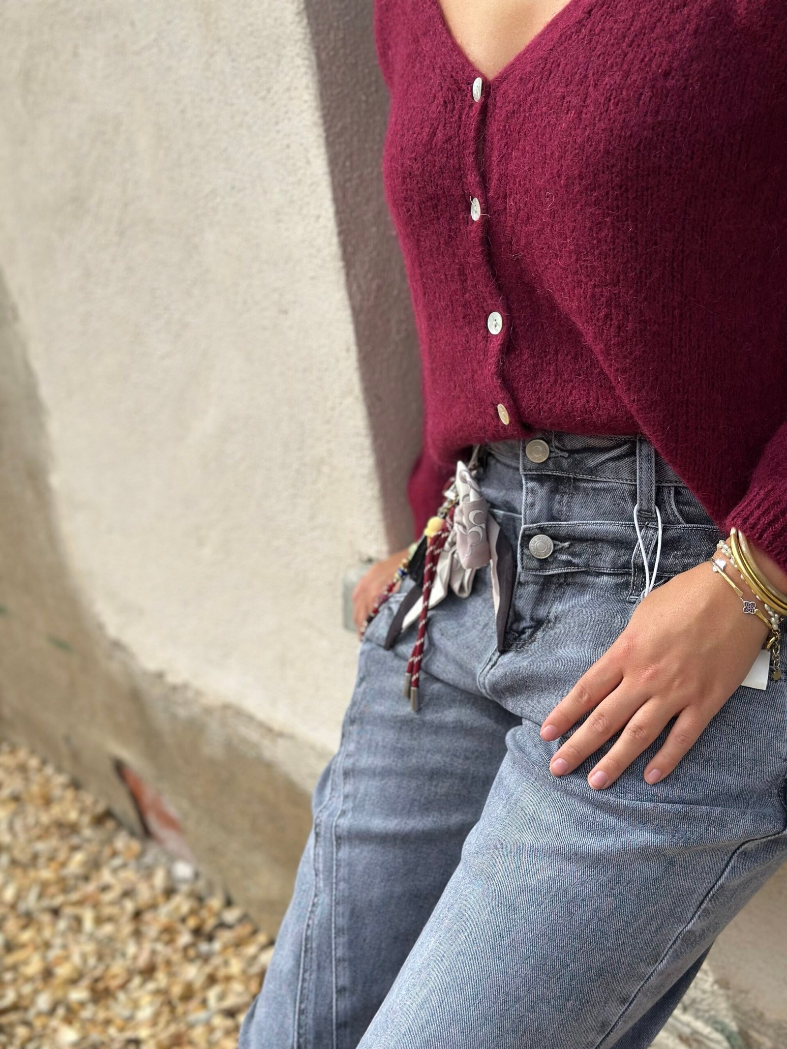Sa teinte grise délavée lui donne un look casual et urbain, parfait pour des tenues du quotidien avec du caractère.🌸