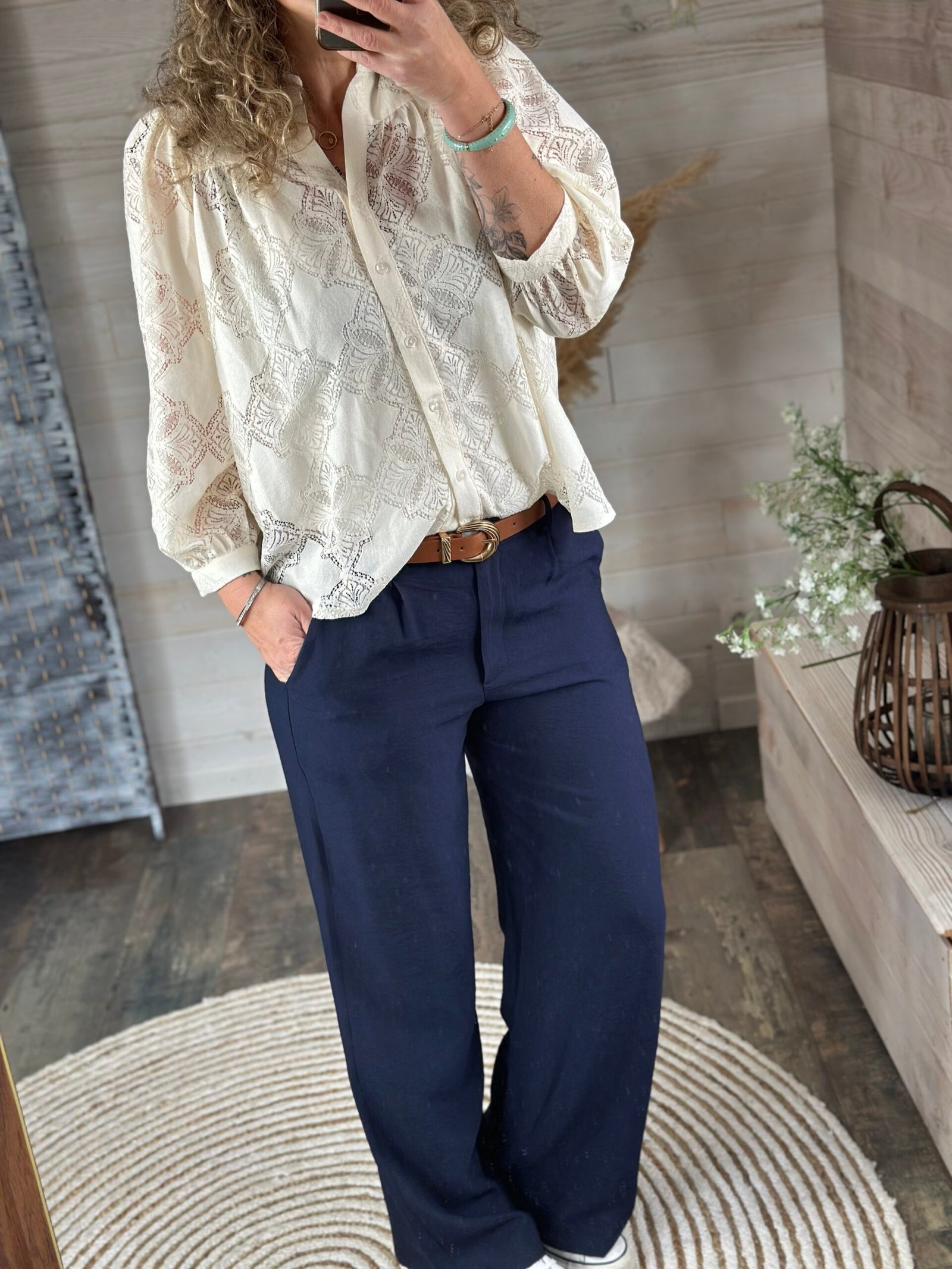 Pantalon iconique de chez Rue des Abbesses 💕avec sa coupe droite fluide et sa taille élastiquée à l arrière pour un confort ultime 💙♥️