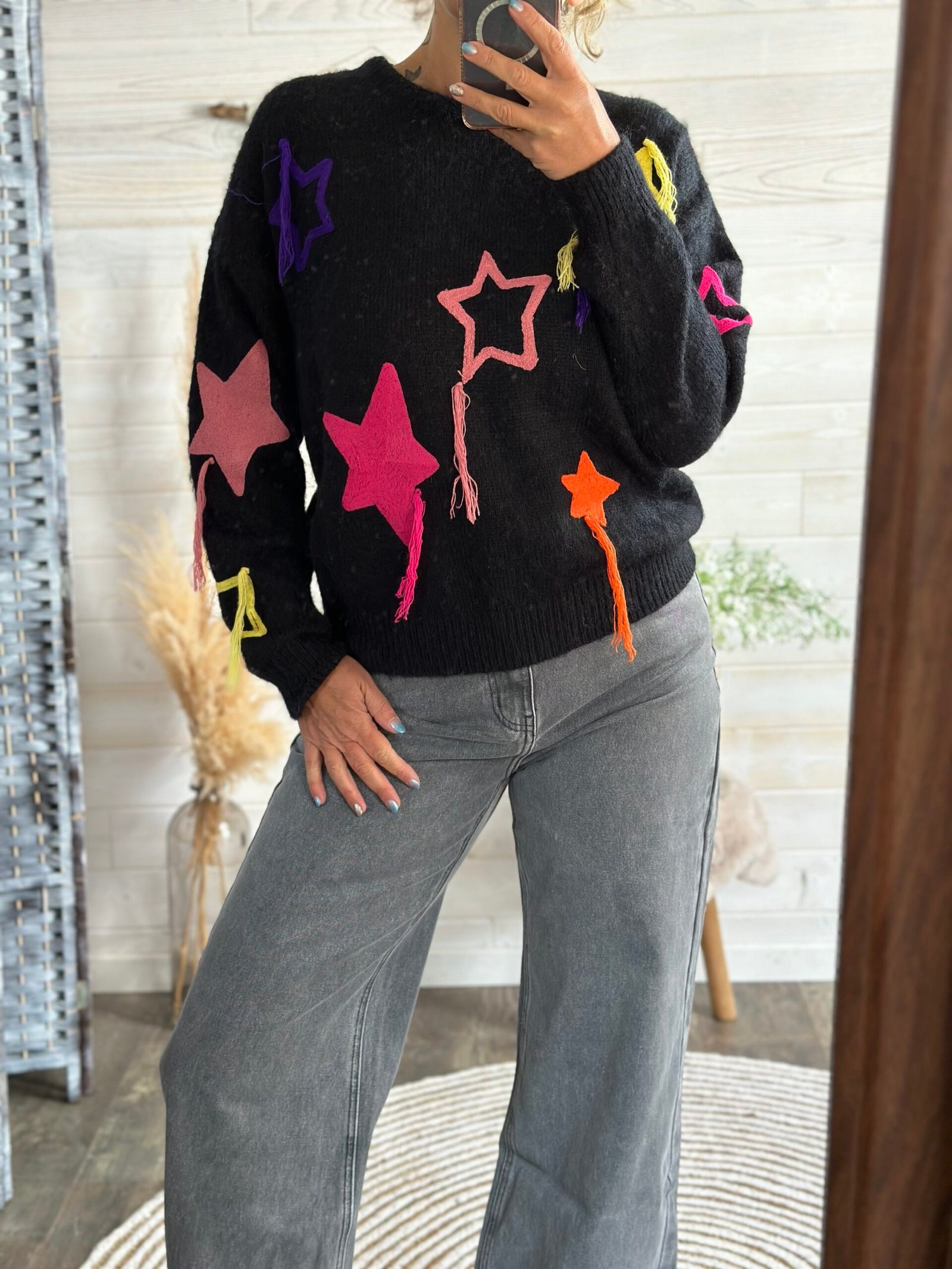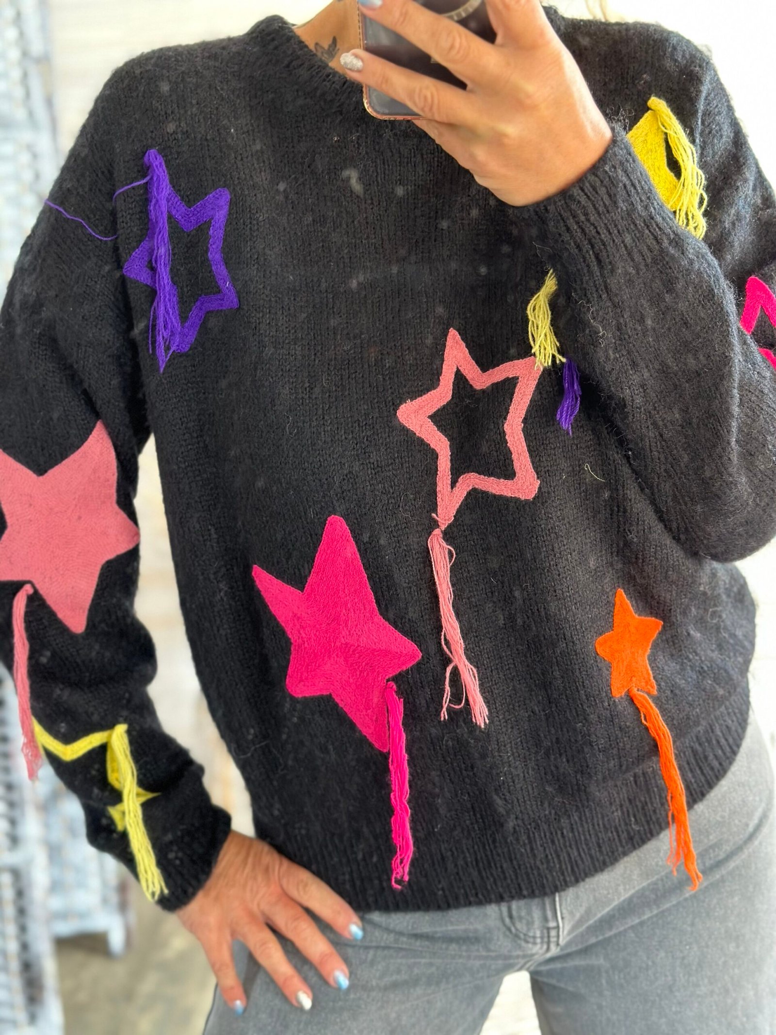 Stylé avec ses étoiles colorées et tissées sur devant